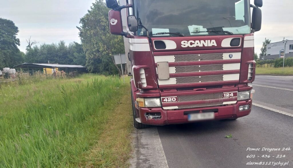 W zdarzeniu brały udział osobowe Renault oraz ciągnik siodłowy Scania z naczepą.