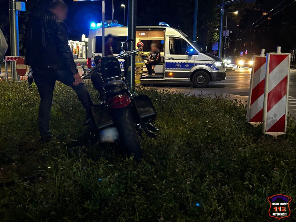 Poszkodowany motocyklista wraz z pasażerem trafili pod opiekę ratowników medycznych.