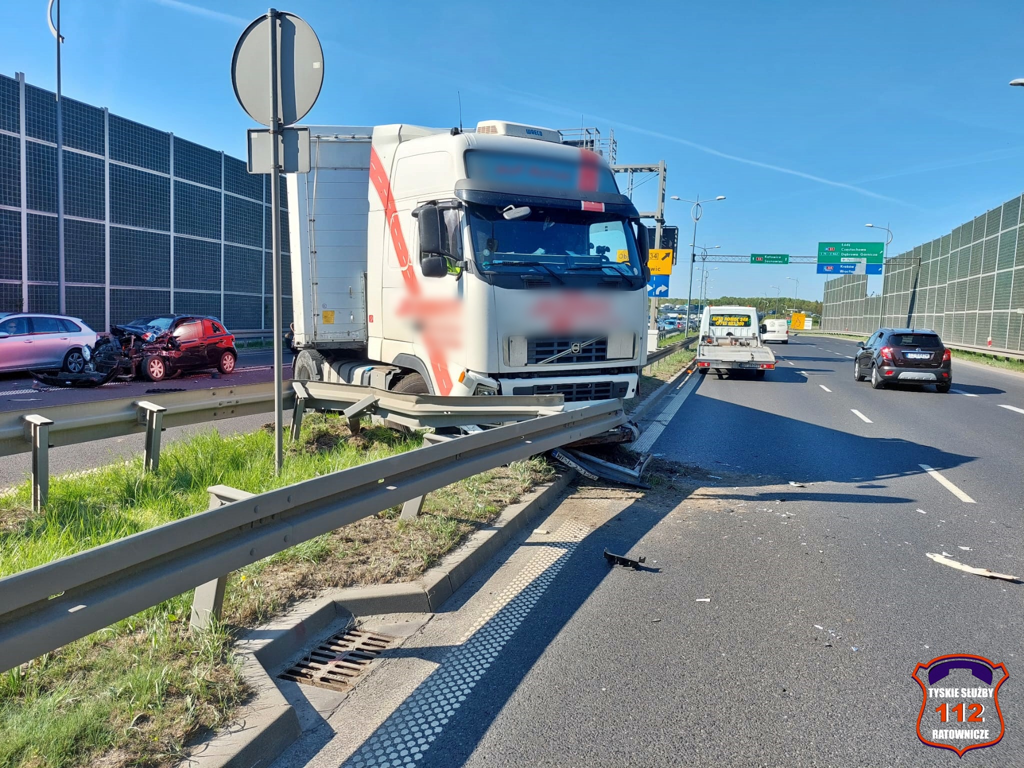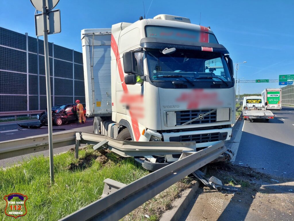 W wyniku zdarzenia ciężarowe Volvo uderzyło w bariery energochłonne oddzielające pasy ruchu.
